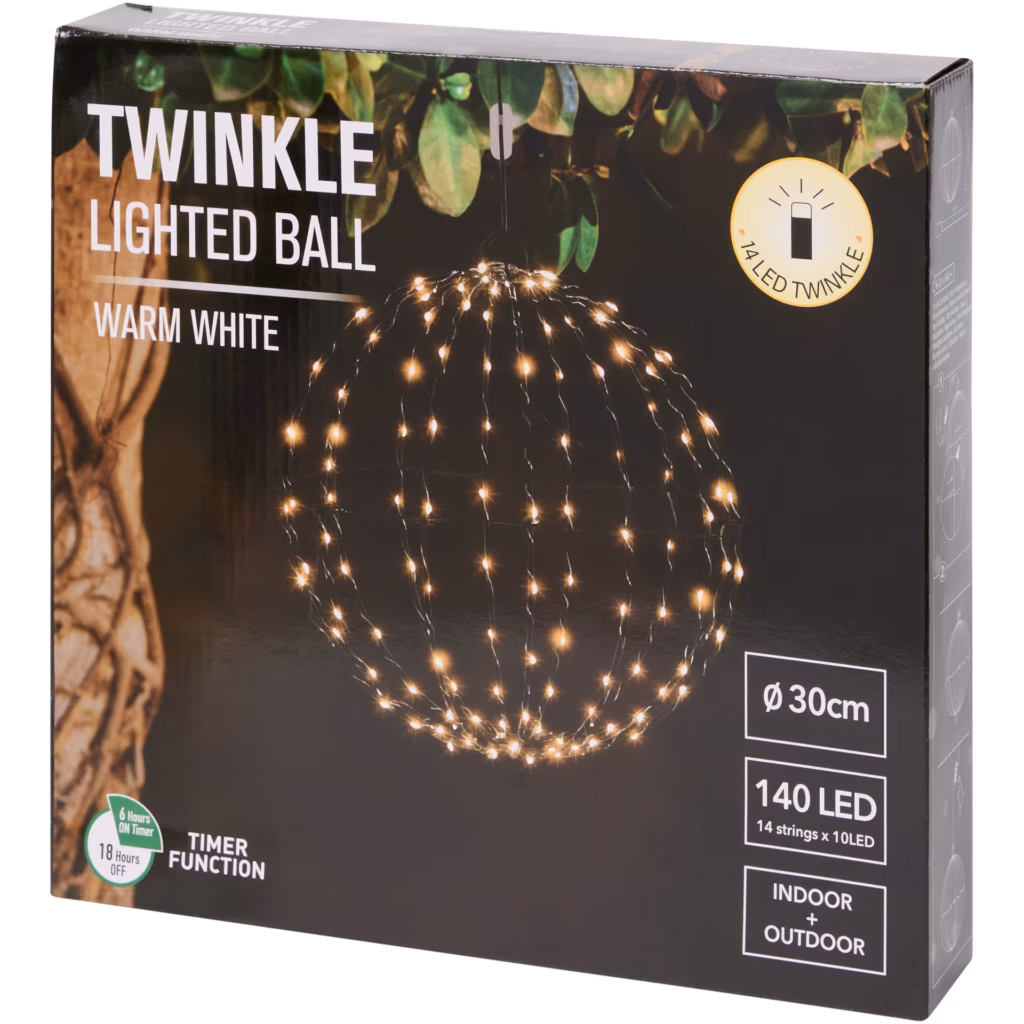 Op het eerste gezicht lijkt het gewoon een bol met lampjes. Maar schijn bedriegt. De bol is gevuld met kleine LED-lichtjes die een zachte, warme gloed verspreiden. Hij is voorzien van een timerfunctie: zes uur aan, achttien uur uit. Dat betekent dat je ’s avonds je huis kunt laten oplichten zonder dat je constant bezig hoeft te zijn met aan- en uitzetten. Bovendien is de bol geschikt voor zowel binnen als buiten, waardoor je hem flexibel kunt gebruiken: in de kerstboom, voor het raam of zelfs op het terras.