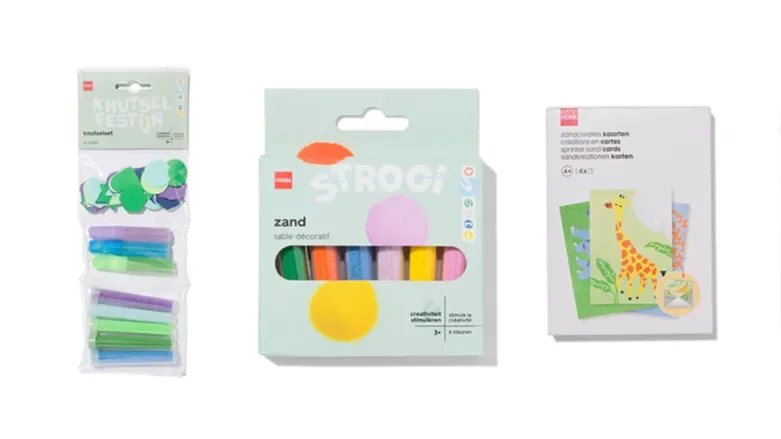 Het gaat specifiek om knutselzakken met roze en paars zand, varianten met groen en blauw zand, de ‘zandstrooiers 6 stuks’, ‘zandcreaties magneten’ en ‘zandcreaties kaarten’. Een deel van deze producten werd tot vorige week woensdag nog verkocht in de winkels.