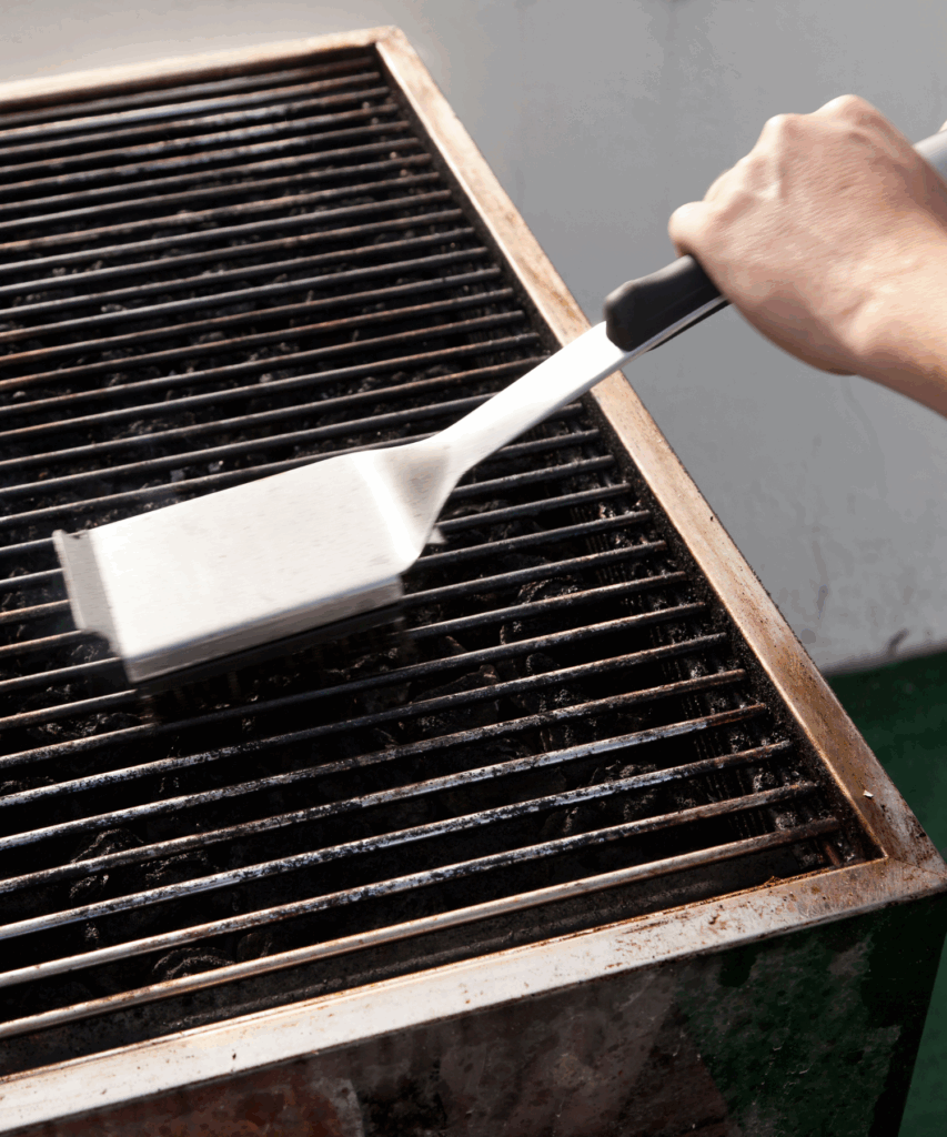 Gebruik een stevige BBQ-borstel of staalborstel om de resten los te schrobben.