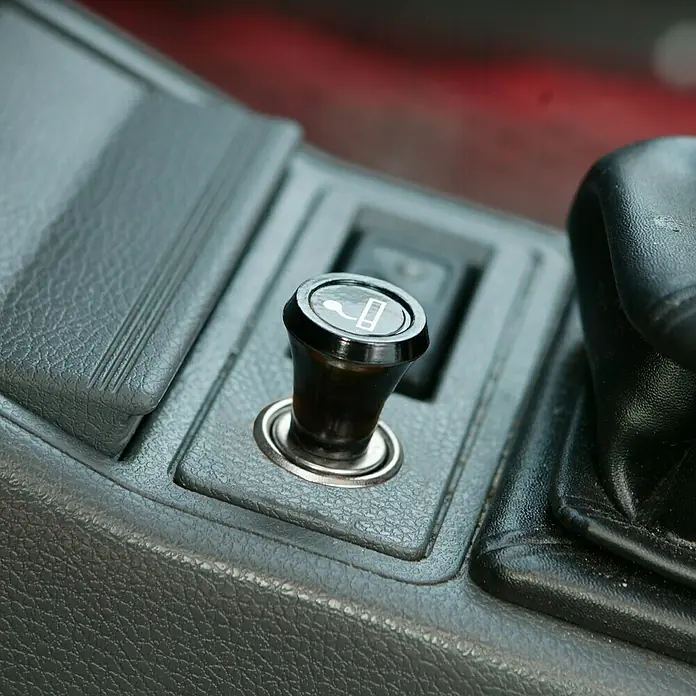 Het gaat om zo’n traditionele aansteker die vroeger standaard in vrijwel elk dashboard te vinden was. Je drukte hem in, wachtte een paar seconden en haalde hem er vervolgens weer uit, roodgloeiend en klaar voor gebruik. Tegenwoordig zijn ze grotendeels verdwenen of vervangen door 12V-aansluitingen en USB-poorten, maar jarenlang was dit een vast onderdeel van het interieur.