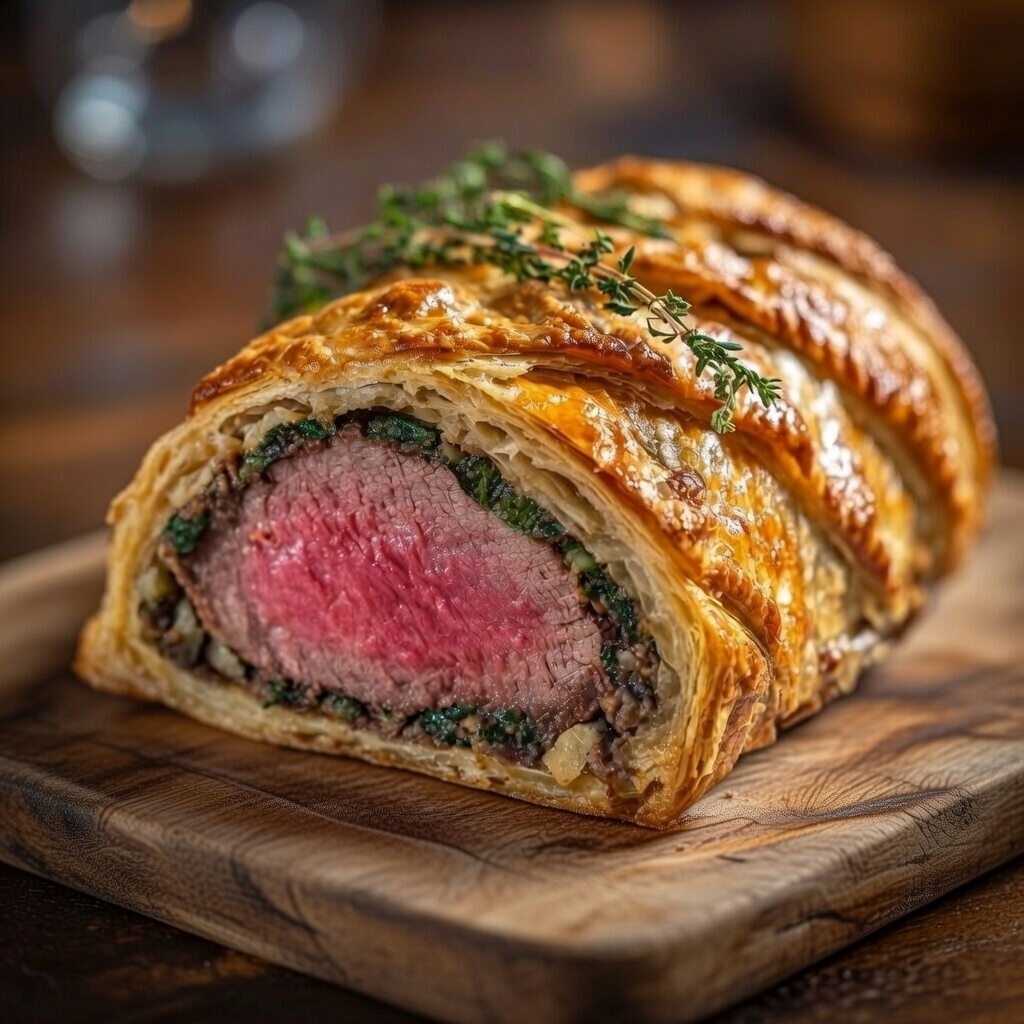 Deze Hartige Beef Wellington bewijst dat je niet op een feestdag hoeft te wachten om een culinair hoogstandje te maken. Met een sappige kern, een rijke vulling en een knapperige, goudbruine korst is dit gerecht een absolute showstopper die indruk maakt op iedere eter. Het vergt aandacht en zorg, maar het resultaat – een perfect gebakken, smaakvolle Wellington – is elke minuut waard.