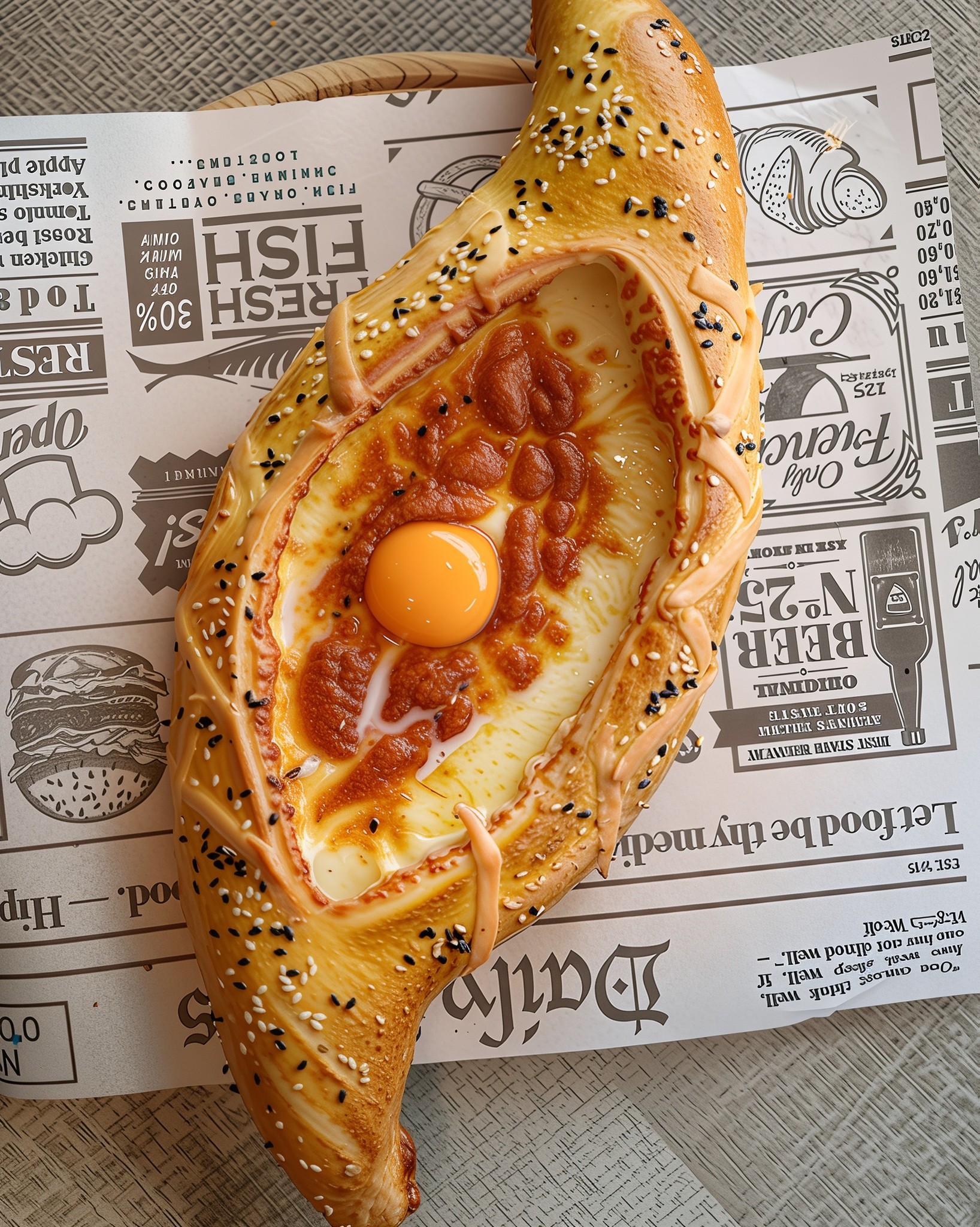 Khachapuri is een traditioneel Georgisch kaasbrood. Er bestaan verschillende regionale varianten, maar de bekendste is de Adjaruli khachapuri: een bootvormig brood met in het midden gesmolten kaas, boter en een rauw ei dat in de oven gaart. Het lijkt een beetje op een pizza en een broodboot in één, maar de smaak en structuur zijn echt uniek.