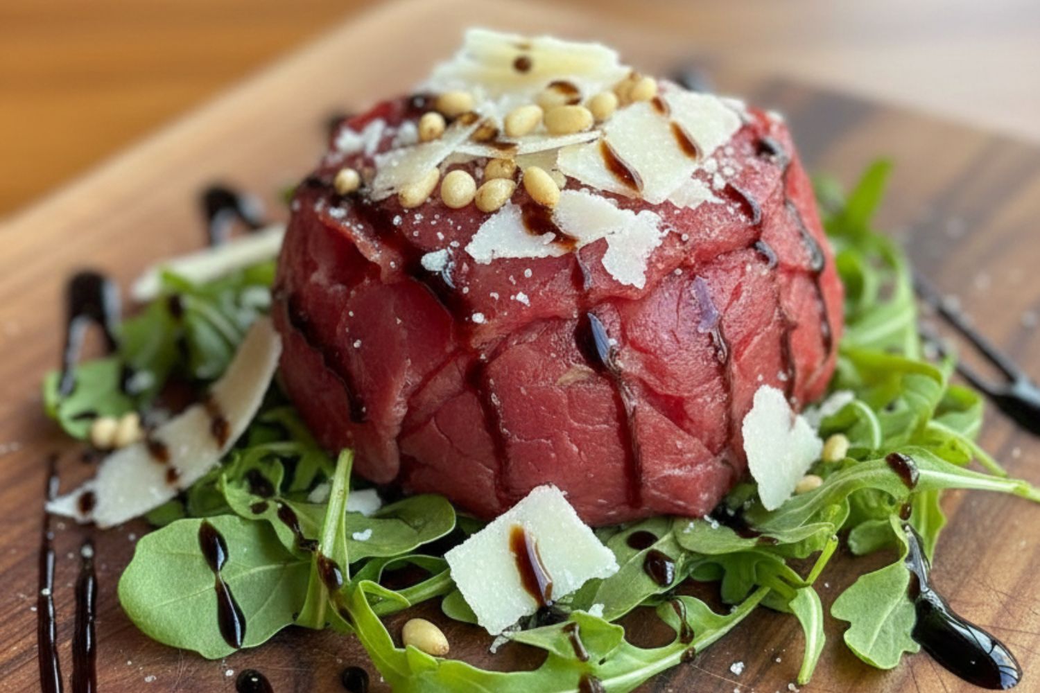 - 1 verpakking carpaccio (± 120 g), inclusief kaas en pijnboompitten