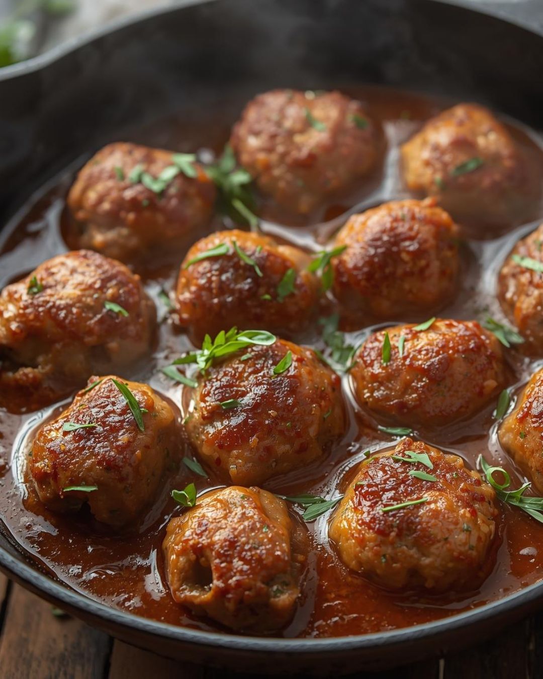 Tijdens dit sudderen gebeurt het echte werk: de ballen worden volledig gaar, nemen smaak op uit de jus en blijven tegelijkertijd sappig. De jus dikt langzaam in en krijgt een volle, diepe smaak.