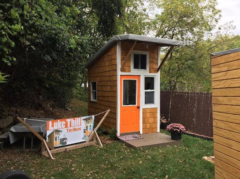 Voor Luke is zijn tiny house vooral een plek om te relaxen. Hij brengt er regelmatig nachten door, ontvangt vrienden of gebruikt het huisje als rustige plek om huiswerk te maken. Buiten staat een barbecue en de tuin eromheen is opgefleurd met bloemen.