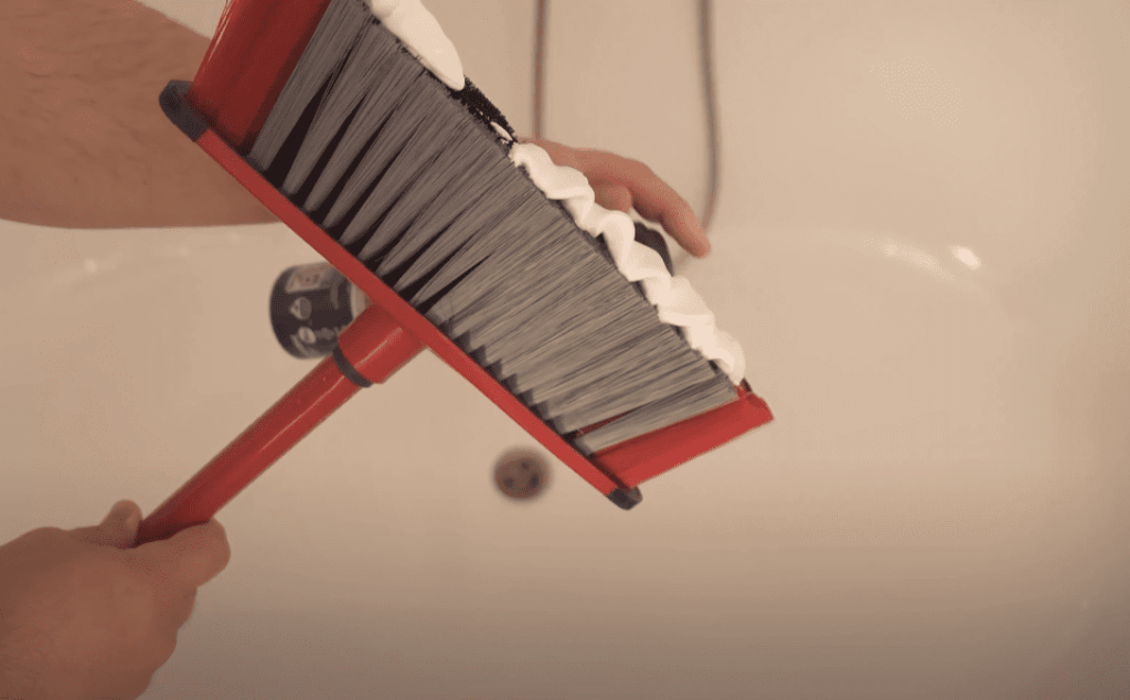 Voor een bad of douchebak hoef je niet uren te schrobben. Smeer scheerschuim op een bezem en veeg daarmee over het oppervlak. Laat het 30 minuten intrekken, veeg nogmaals en spoel daarna af. Zo heb je een schoon bad zonder te bukken of zware inspanning.