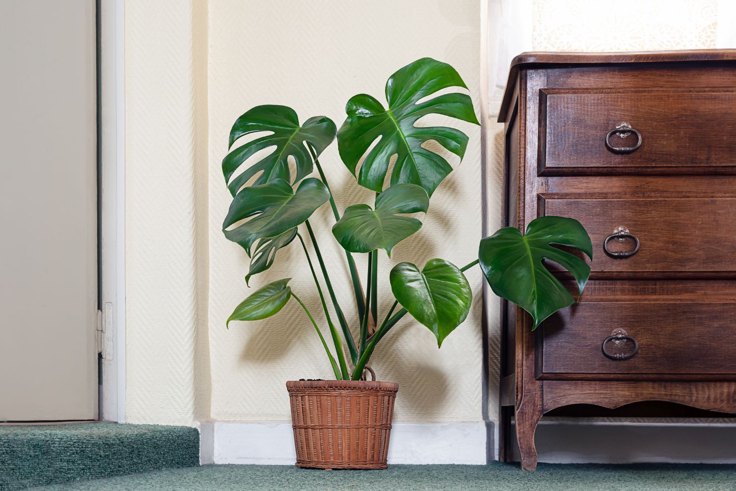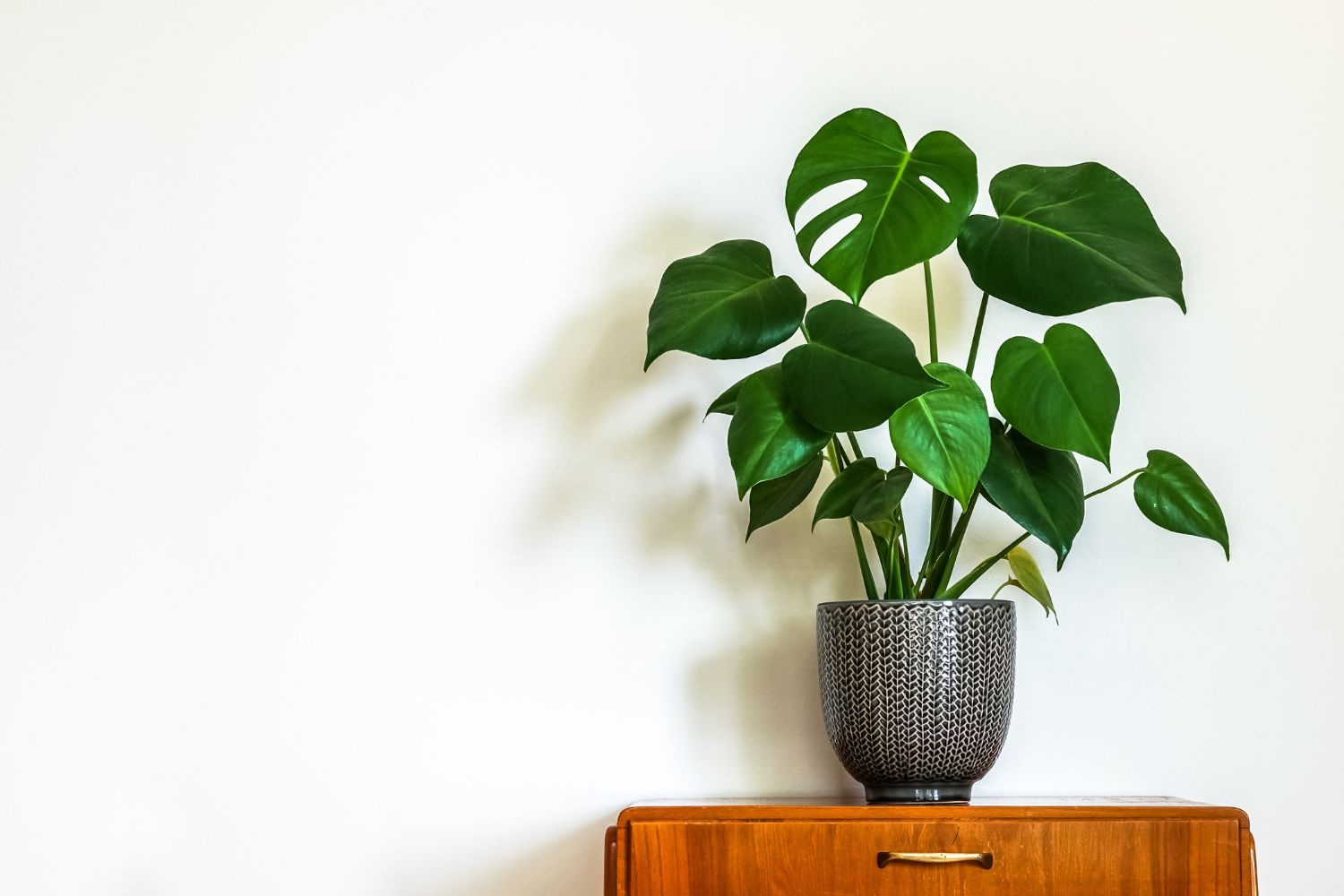 De Monstera is geen moerasplant. Toch gieten veel mensen wekelijks een volle gieter leeg boven de pot. Het gevolg: