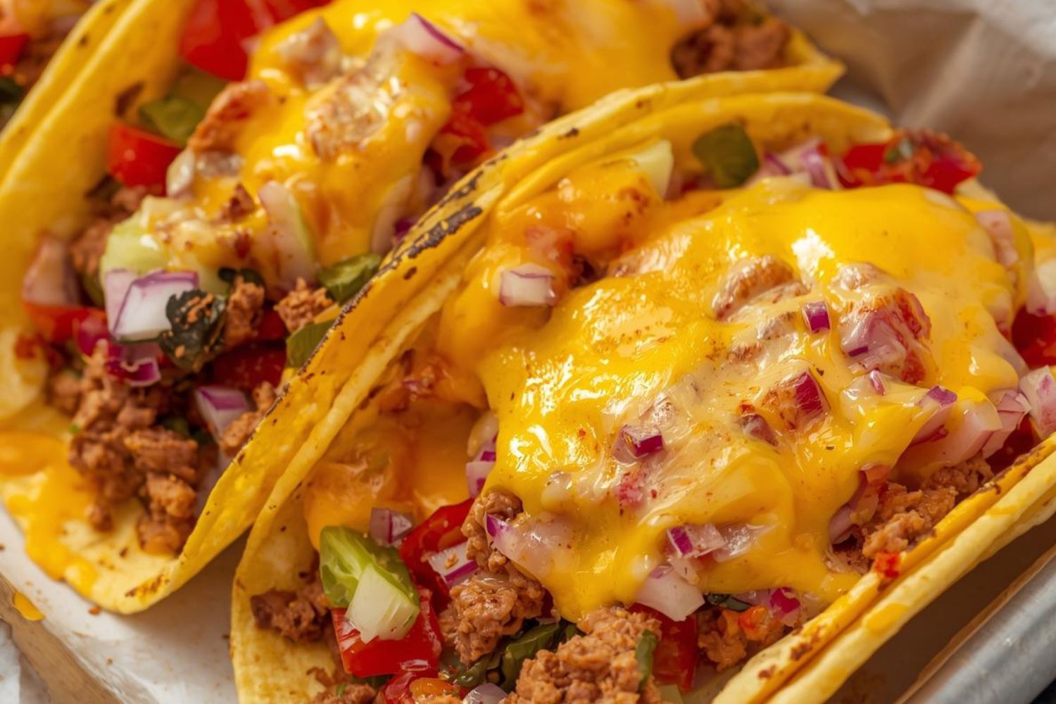 Met dit recept heb je een basis waarmee je eindeloos kunt variëren, van hartig tot pittig, van vlees tot plantaardig. Het resultaat: taco’s die niet alleen goed smaken, maar er ook prachtig uitzien op tafel, met gesmolten kaas die alles samenbrengt in een warme, romige laag vol kleur en textuur.