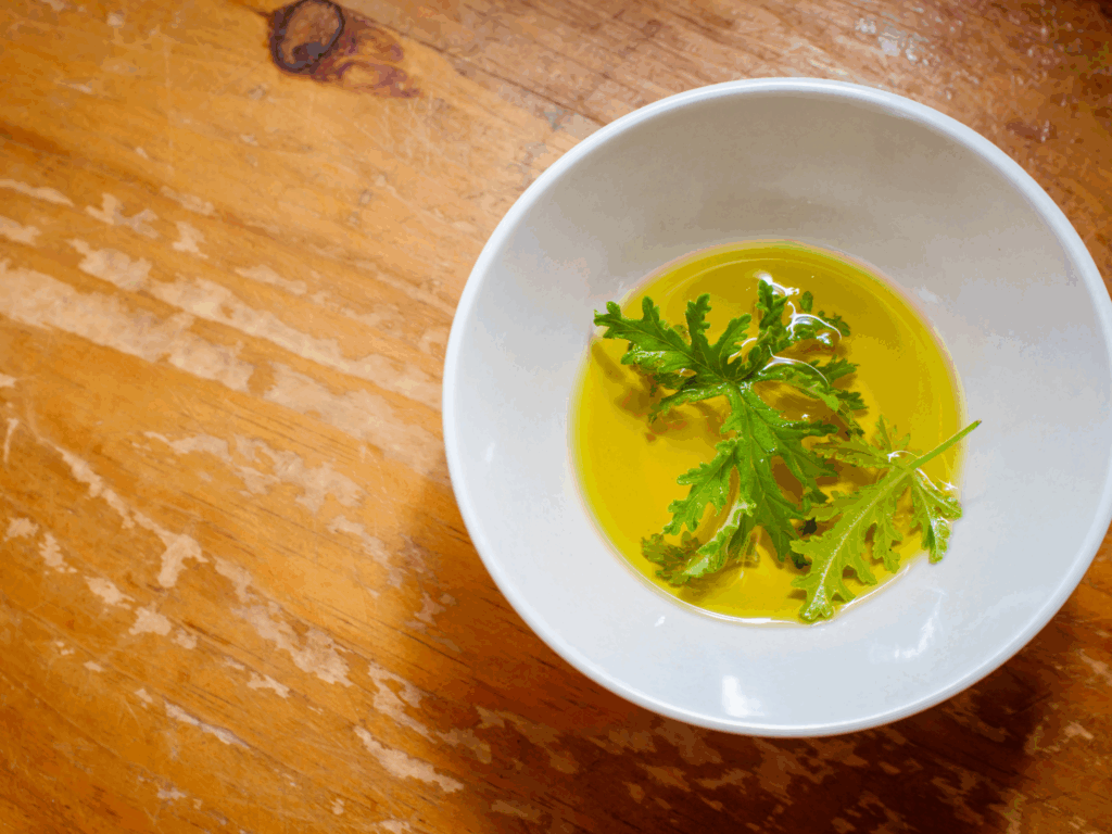 De citronellaplant is al lang bekend als een natuurlijke muggenwerende krachtpatser. Muggen hebben een hekel aan de citrusachtige geur die deze plant afgeeft. Vaak zie je citronella verwerkt in kaarsen en sprays, maar een nog eenvoudigere en pure manier is om een stukje verse citronellaplant in een bakje olijfolie te leggen. De olijfolie werkt als een drager van de geur, waardoor de aroma’s langzaam vrijkomen en de muggen op afstand blijven.
