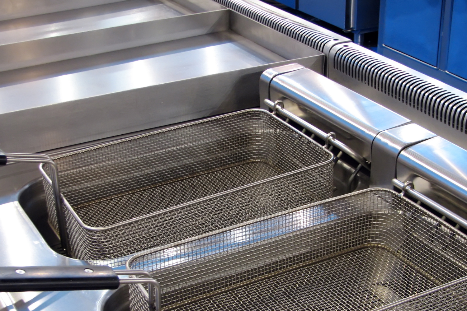 De makkelijkste oplossing is soms ook de beste. Warm water met een krachtig afwasmiddel doet wonderen, zeker wanneer je de frituurpan even laat inweken.