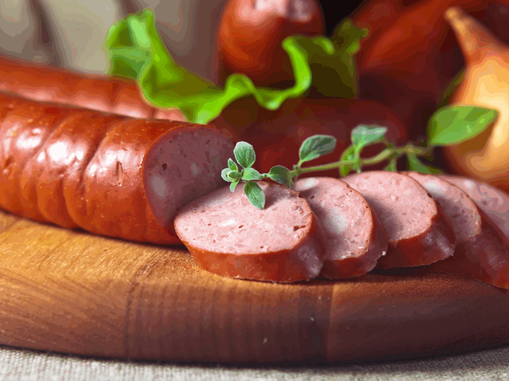 Haal het vlees uit de pan als het zacht is. Snijd het in stukjes en doe het terug in de soep. Voeg de rookworst toe en laat alles nog 30 minuten zacht koken.