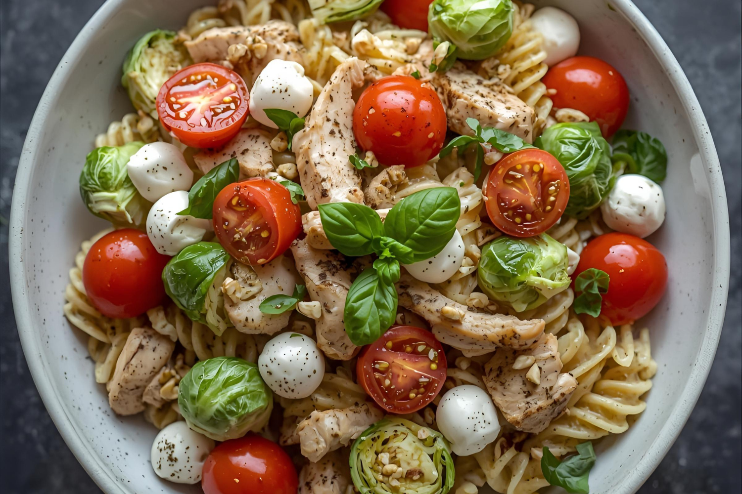 Een goede pastasalade kan een complete maaltijd zijn: fris, vullend, kleurrijk en bomvol smaak. Deze versie is nét even anders dan je gewend bent, want we voegen een onverwachte maar fantastische groente toe: spruitjes. Ja, echt waar. Spruitjes zijn allang geen bitter bommetje meer zoals vroeger; door ze goed te bereiden worden ze zoet, nootachtig en heerlijk knapperig. In combinatie met zachte mozzarella, sappige cherry tomaatjes, verse basilicum, malse kip en geroosterde pijnboompitjes ontstaat een salade die zowel luxe als huiselijk aanvoelt.