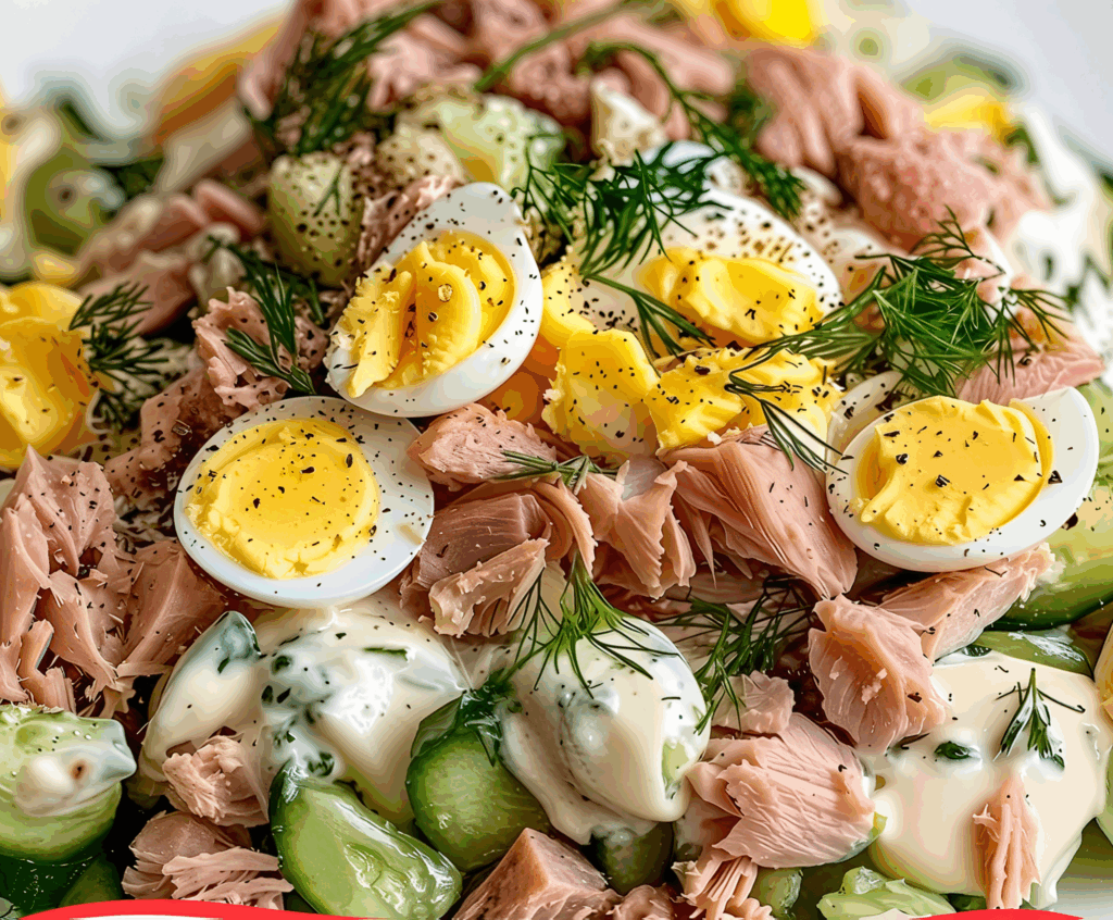 Wat deze salade zo bijzonder maakt, is de verrassende combinatie van smaken en structuren. De romige gekookte eieren zorgen voor een zachte bite, de komkommer brengt een knapperige frisheid en de tonijn levert niet alleen een hartige smaak maar ook gezonde vetten en eiwitten. Met een eenvoudige dressing op basis van yoghurt, citroen en mosterd geef je dit gerecht een frisse, lichte twist zonder onnodige calorieën.