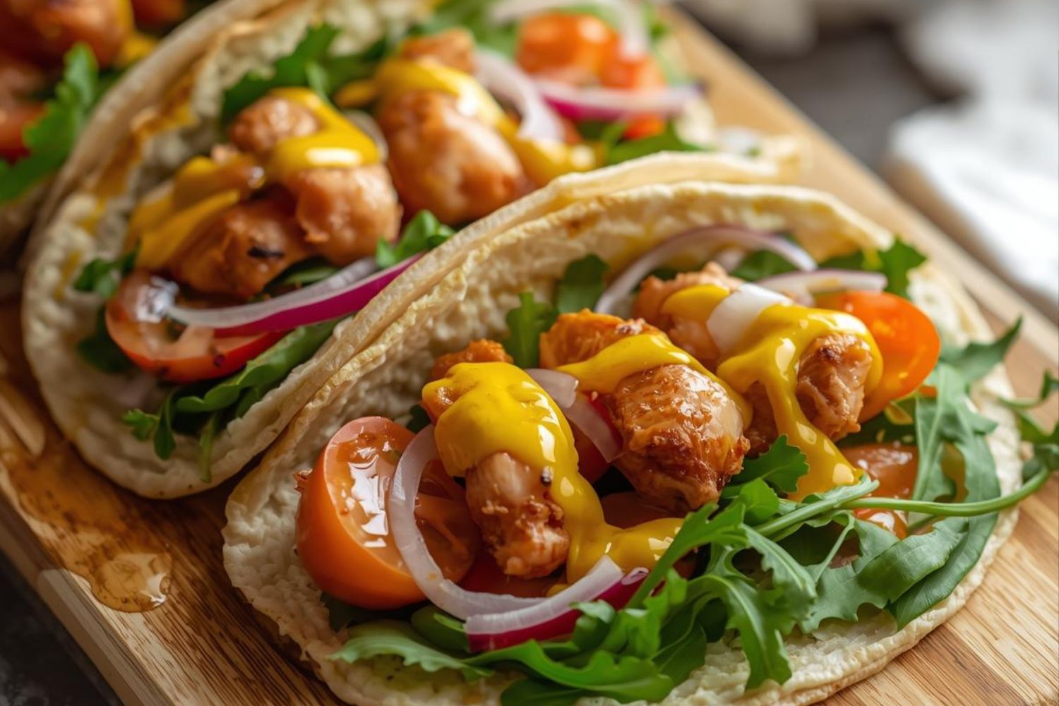 Kipwraps met krokante kipstukjes en honing-mosterd dressing zijn zo’n gerecht waar bijna iedereen blij van wordt. Ze zijn knapperig en fris tegelijk, makkelijk te maken en perfect als lunch, diner of zelfs als informele maaltijd voor gasten. Het fijne aan wraps is dat ze toegankelijk zijn, maar toch genoeg ruimte bieden om te spelen met smaken en structuren. In dit recept combineer je goudbruine, krokante kip met frisse rucola, sappige tomaat, zachte ui en een zoet-pittige dressing die alles samenbrengt.