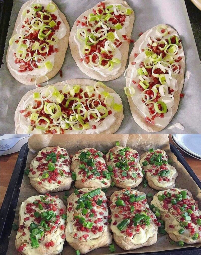 Op zoek naar een hartige snack of een unieke lunch die net even anders is dan anders? Dan zijn deze middeleeuwse roomfladen echt iets voor jou. Deze rustieke platbroden – rijkelijk belegd met crème fraîche, spek en bosui – zijn geïnspireerd op traditionele recepten uit de middeleeuwen. Ze zijn knapperig van buiten, luchtig van binnen en zitten boordevol smaak. Het mooie? Je hebt er geen ingewikkelde ingrediënten voor nodig en je zet ze binnen een uur op tafel. Perfect voor een borrelplank, een lunch met vrienden of als bijgerecht bij een stevige soep.