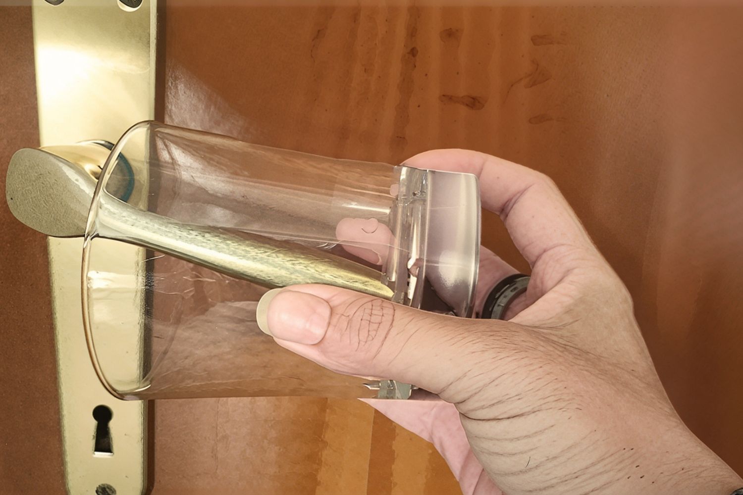 Zet voor het slapen een glas op de deurklink. Simpel, effectief en gratis beveiligingsalarm.