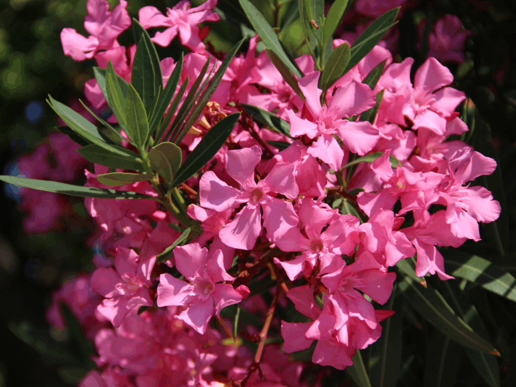 Bekend uit het Middellandse Zeegebied, maar verrassend taai. Zolang het niet langdurig vriest, kan de oleander gewoon buiten blijven staan.