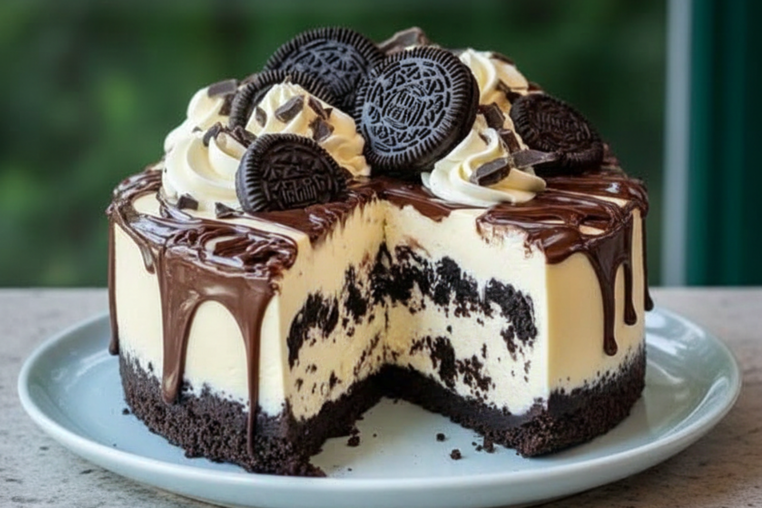 Deze no-bake Oreo cheesecake bewijst dat een spectaculair dessert helemaal niet ingewikkeld hoeft te zijn. Met een paar simpele ingrediënten en wat geduld maak je een taart die eruitziet alsof hij uit een patisserie komt – maar gewoon uit je eigen keuken.