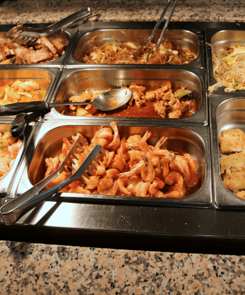 Wat veel mensen niet doorhebben, is dat het hele restaurant tot in de details is ingericht om jouw eetgedrag te beïnvloeden. Denk aan de kleine borden: je moet vaker opstaan, wat je hersenen sneller het signaal geeft dat je genoeg hebt gehad. Rijst, pasta en brood — goedkope en vullende ingrediënten — liggen vooraan en in overvloed. Dure producten zoals biefstuk, zalm of garnalen? Die zijn moeilijker te vinden, beperkt beschikbaar of worden bewust langzaam bijgevuld.